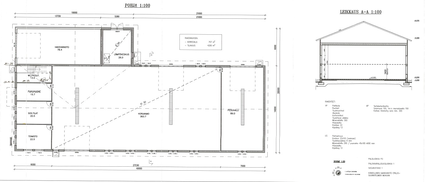 | Muut varustelut | Pysäköintipaikkoja henkilöstölleAsiakaspysäköintipaikkojaNosto-ovetVoimavirtaÖljykaivo |