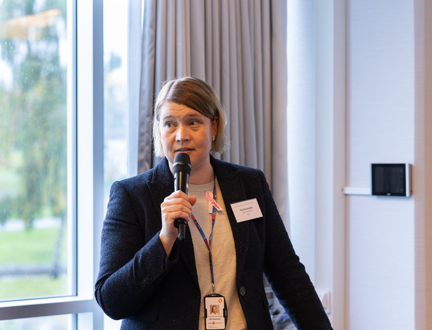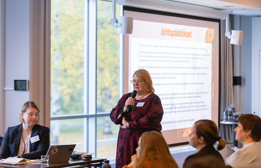 Valtakunnallista mallia työttömyysturvan yhteistyöprosesseihin esittelivät Regina Saari, Tampereen työllisyysjohtaja (kuvassa) sekä Sarita Alarotu, työttömyysturvaetuuksien keskuksen päällikkö Kelasta sekä Tarja Paulaniemi, kehittämispäällikkö Tampereen kaupungilta.
