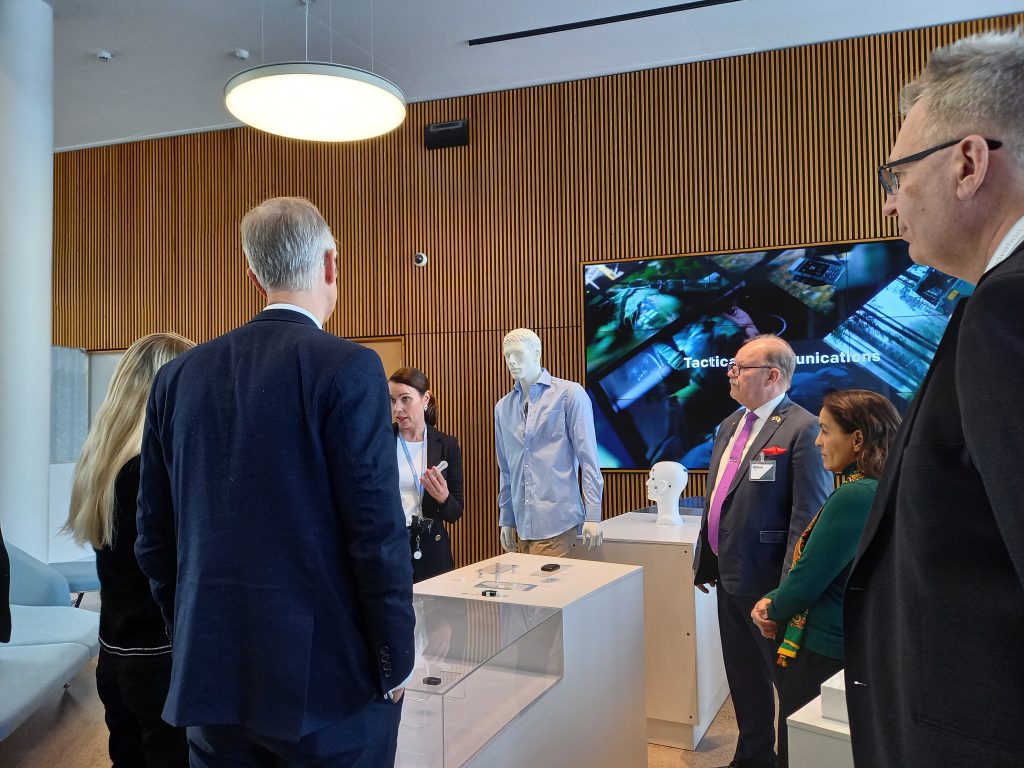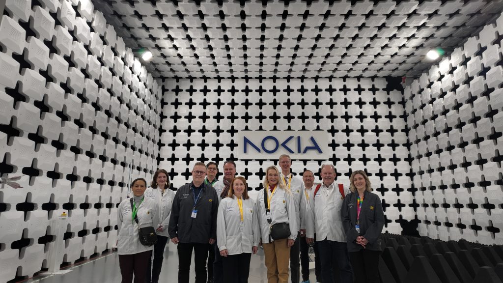 Seuraavan päivän koittaessa matka kävi kohti Nokian uudenkarheaa kampusta, jossa jo toimitilat itsessään saivat vieraiden päät kääntymään. Kalvoilla nähty mikrosiruihin, 6G-teknologiaan ja kaksoiskäyttömahdollisuuksiin keskittynyt sisältö sai konkretiaa ympärilleen, kun delegaatio suunnisti mitä monimuotoisimpien työskentelytilojen läpi. Suurlähettiläät esittivät ahkerasti kysymyksiä, jotka avasivat Nokian toimintatapoja ja vahvuusalueita hieman lisää.